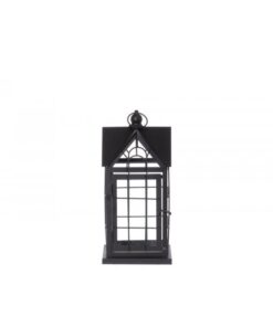 Tyylikäs, musta metallilyhty.  Korkeus 32 cm, lyhtyosan koko 15×15 cm. Materiaali metalli ja lasi.  Lyhdyn sivut yläosasta avoimia katon kohdalla.