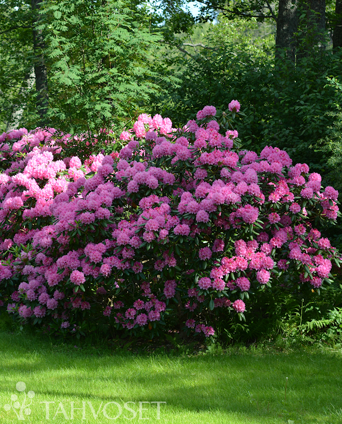 Kukat voimakkaan vaaleanpunaiset, tummatäpläiset, suuret kukkatertut. Kukkii kesäkuun alkupuolella. Lehdistö on kaunis, kiiltävän tummanvihreä. Pystykasvuinen, säännöllisen pyöreä ja runsaasti haarova pensas on kestävä FinE -lajike.