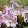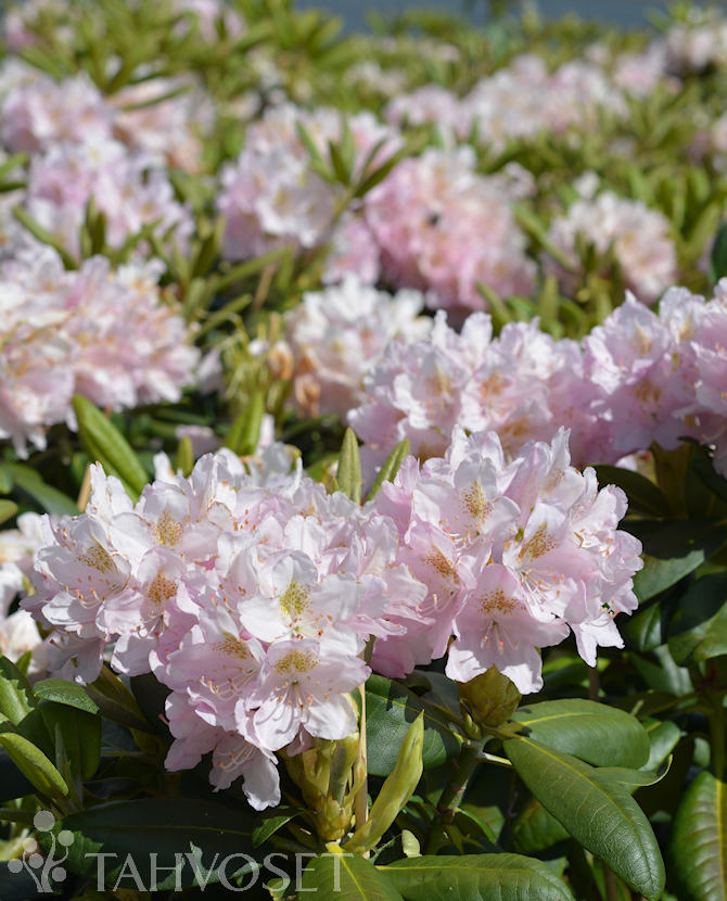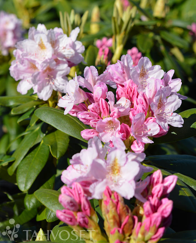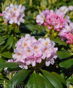 Kukkatertut ovat täyteläiset ja hennon vaaleanpunaiset, joissa on ruskeaa täplitystä. Kukkii runsaasti kesäkuun puolivälissä tai sen jälkeen. Nuppuja ja uutta kasvustoa peittää ruskea nukka.