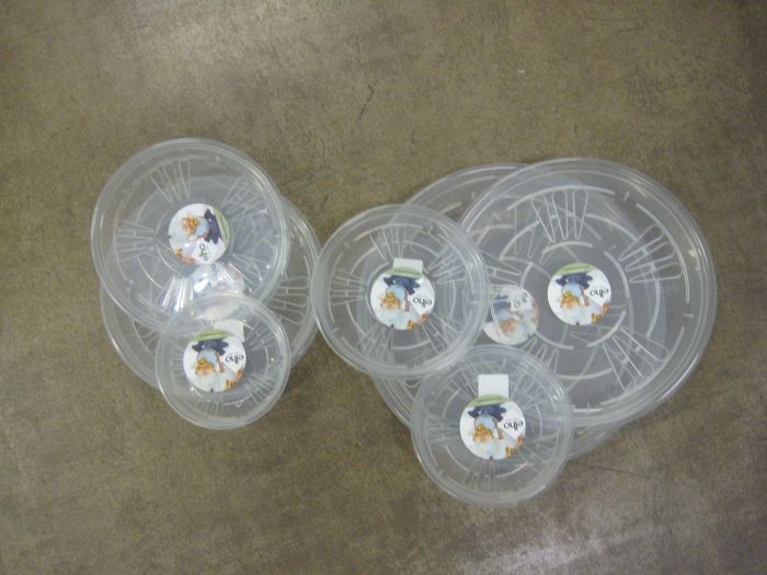 Ruukun alunen, halkaisija 18 cm, pohja 15 cm. Materiaali kirkas muovi, kierrätysmuovia.