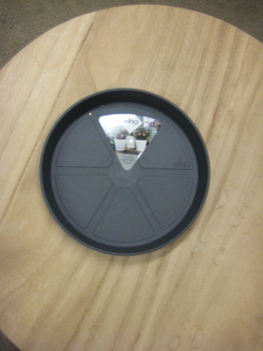 Ruukun aluslautanen, jonka reunan korkeus on 2,5 cm. Halkaisija 21 cm. Tälle aluslautaselle sopii ruukku, jonka maksimi pohjan halkaisija on 18,5 cm. Materiaali kierrätysmuovia, väri valkoinen.