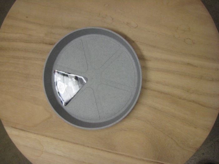 Ruukun aluslautanen, jonka reunan korkeus on 2,3 cm. Tälle aluslautaselle sopii ruukku, jonka maksimi pohjan halkaisija on 15,5 cm. Halkaisija 17 cm. Materiaali kierrätysmuovia. Väri vaaleanharmaa.