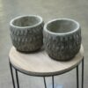 Kaunis betoniruukku, jossa on hieno kuviointi.