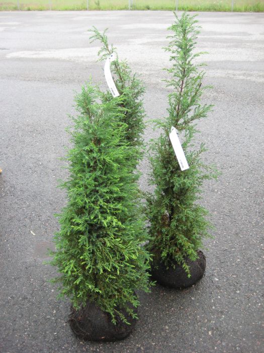 Hyvin tiivis ja tuuhea, pysty ja kapea kasvutapa. Neulaset sinivihreä, oksien kärjet pystyt.