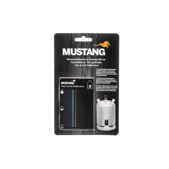 Magneettikiinnitteinen PET-materiaalista oleva liuska teräksiseen kaasupulloon.