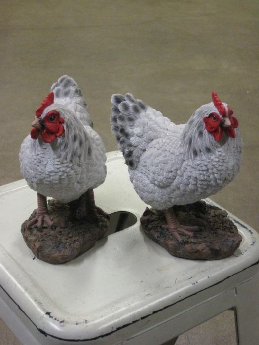 Valkoinen kana -patsas.