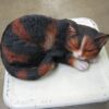 Lepäilevä kissa- ja koirapatsas, materiaali keramiikkaa. Pituus 25 cm, kork.11.5 cm.