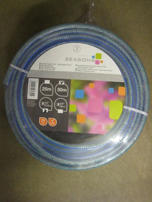Ilman liittimiä jopa 50 metriä letkua, vahvuus 1/2″ 12,5mm, UV-suojattu.
