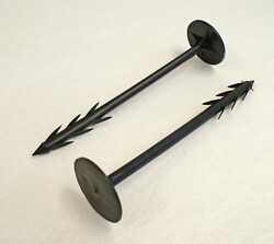 Piikin pituus 20 cm, piikissä hakulat, jotka estävät kankaan karkaamisen piikistä. Päässä olevan muovilätkän halkaisija 5 cm. Helppo upottaa maahan.