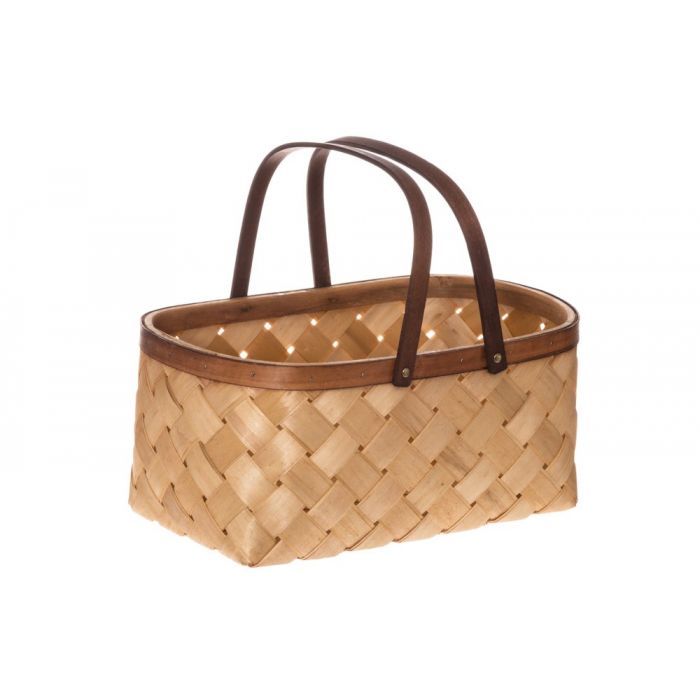 Tukevat, tummanruskeat, kääntyvät kantokahvat ja reunus.