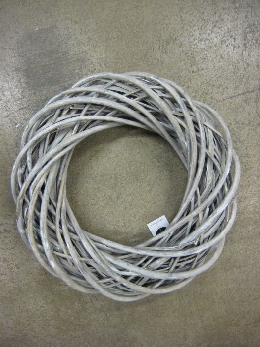 Harmaa pajukranssi, jonka halkaisija on 29 cm. Kehyksen korkeus 7 cm.