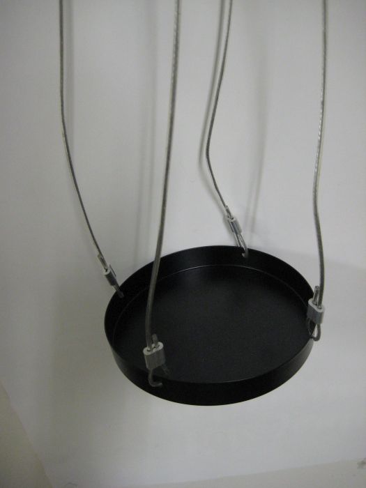 Alustan halkaisija 14 cm, väri musta. Kannattimet muovitettua metallia, pituus 70 cm.