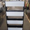 Korkeus 91 cm, kokonaisleveys 44 cm, laatikoiden leveys 39 cm, jalkojen syvyys 41 cm, seinämän syvyys 20 cm.