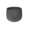 Jämäkkä saviruukku, jossa on kaunis lehtikuvio. Korkeus 10,5 cm, halkaisija 11,5 cm. Väri luonnonvalkea, kuviointi harmaa. Pohjassa ei ole reikää.