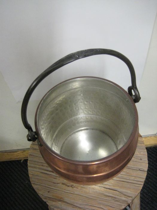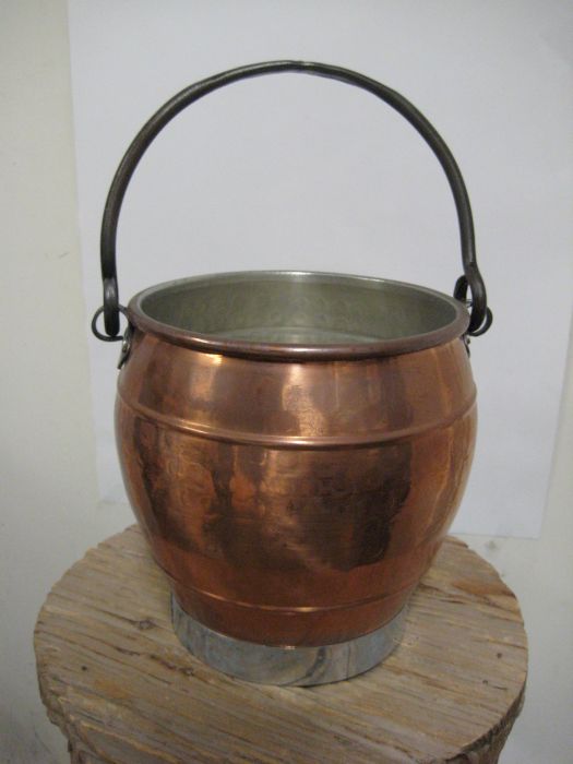 Jämäkkä kuparinen ruukku sangalla Korkeus 19,5 cm, halkaisija 19 cm.