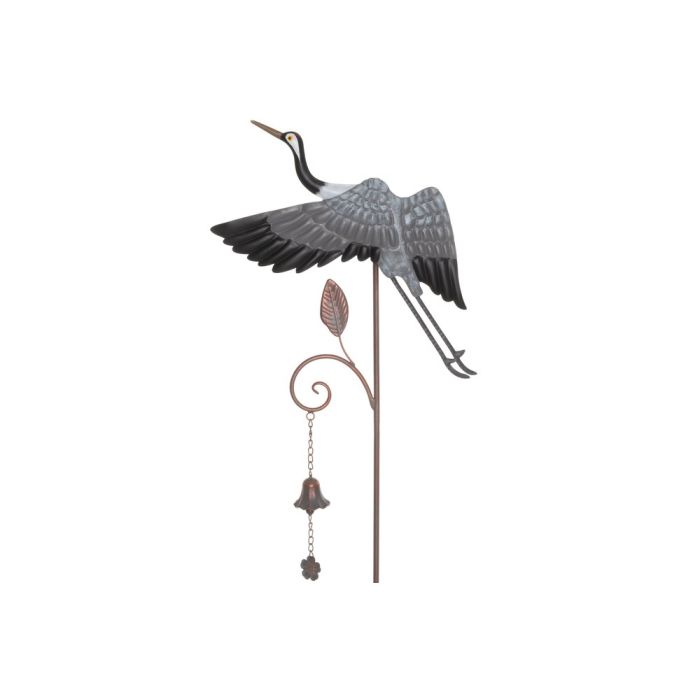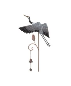 Näyttävä metallista valmistettu kurki pihakoriste.