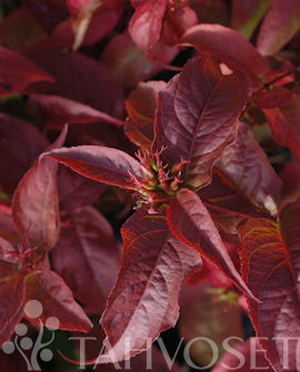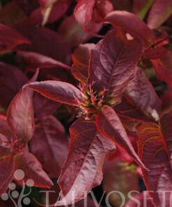 Aikaisin puhkeavat, kookkaat lehdet ovat aluksi sävyltään kellanvihreitä, muuttuvat myöhemmin vihreän kautta punertaviksi.