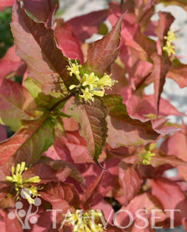 Kukat aluksi vihreänkeltaisia, mutta punertuvat vanhetessaan. Tiheän kasvustonsa ansiosta sopii mainiosti peittokasviksi ja massaistutuksiin rinteisiin ja luiskiin. K-0475. FinE®.