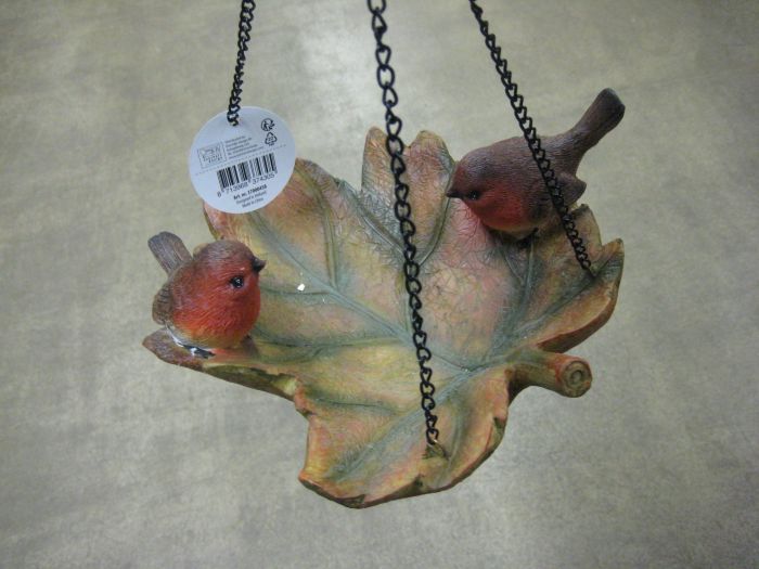 Kaunis lintukylpy, lehdellä kaksi lintua. Voi ripustaa riippumaan.
