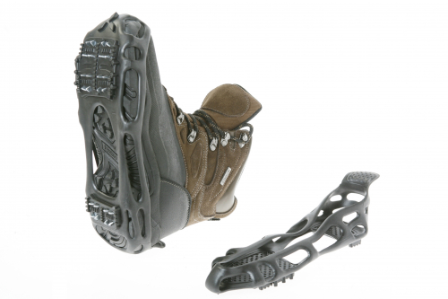Kenkiin pujotettavat liukuesteet, joilla on hyvä pito. Pohjassa on tasaisesti 24 piikkiä.