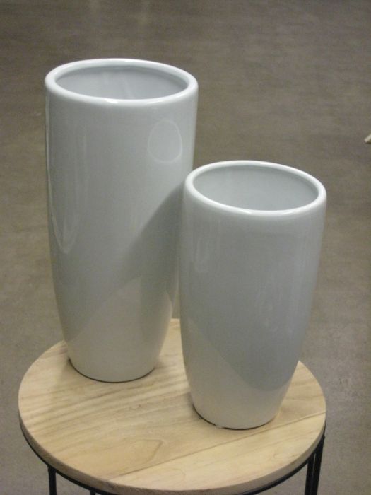 Tyylikäs, kiiltävän valkoinen maljakko, jota voi käyttää myös kukkaruukkuna. Esim. muratti tässä ruukussa on kaunis.
