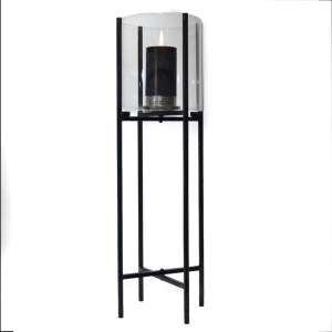 Metallijalka, jonka ympärillä on lasinen kehä.