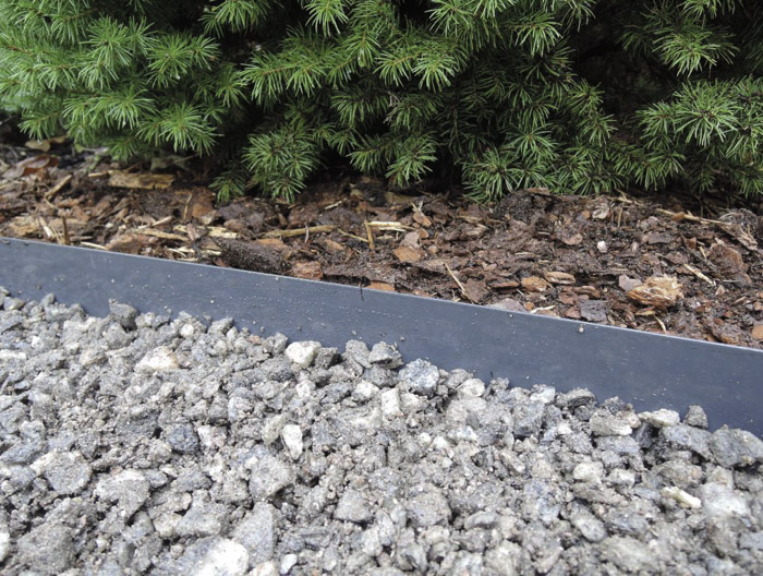 Piikkien avulla maahan painettava metallireunus.