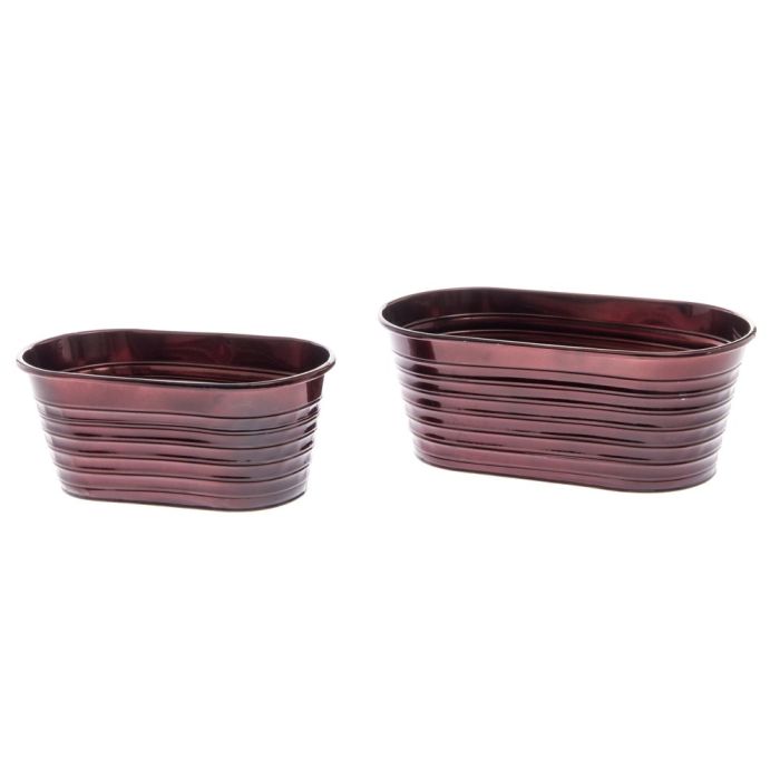 Kaunis, kuparin värinen metalliruukku. Malli ovaali.