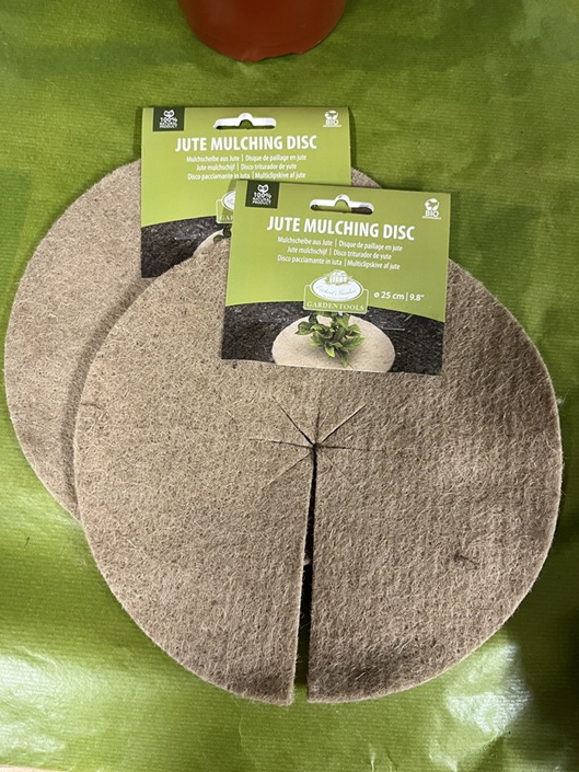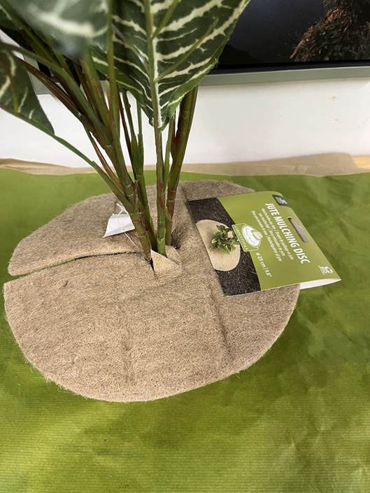 Juuttikankainen multasuoja kasveille.