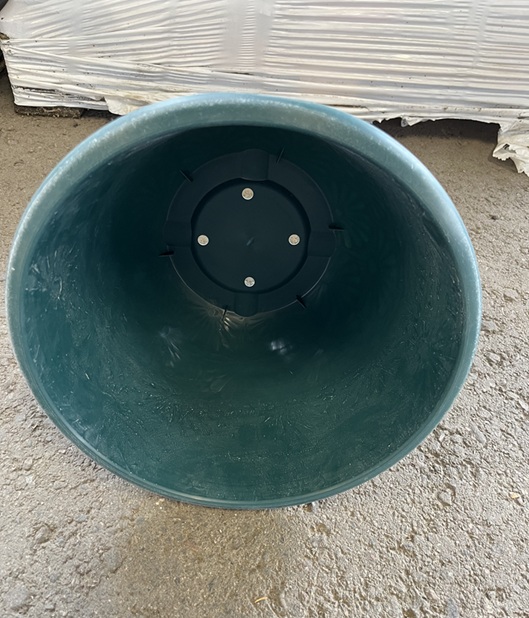 Kierrätysmuovista valmistettu muoviruukku. Korkeus 12,5 cm, halkaisija 13,5 cm. Pohjassa ei ole reikää.
