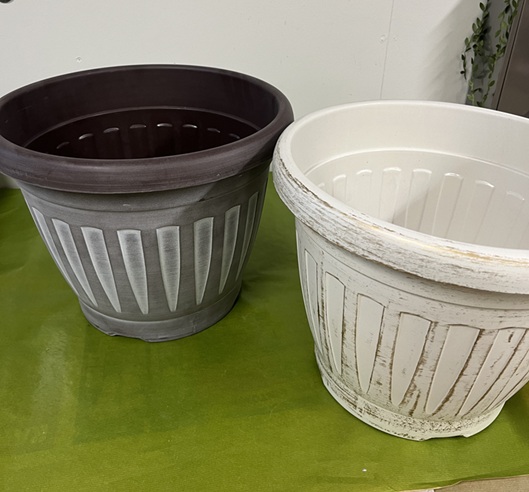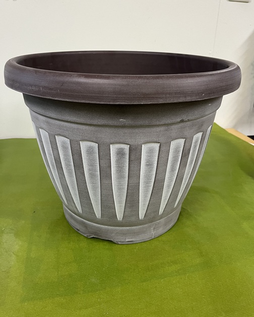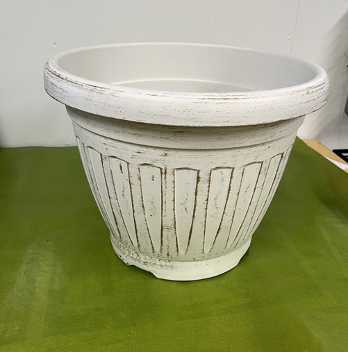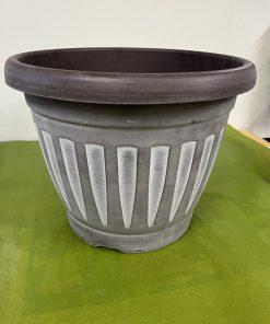4Living antiikkinen, pystyllä raidalla oleva iso muoviruukku.