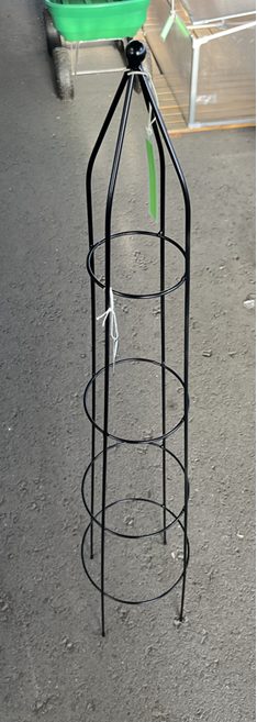 Metallinen, kartion mallinen kehikko, johon on kudottu pajua. Korkeus 41 cm, halkaisija alhaalla 15 cm. Käyttö koristeena siltään tai tukikehikkona köynnöstäville kasveille.