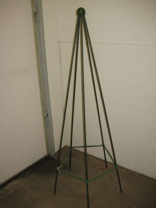Vihreä köynnöstuki, obeliski. Korkeus 150 cm, halkaisija alhaalla 60 cm.