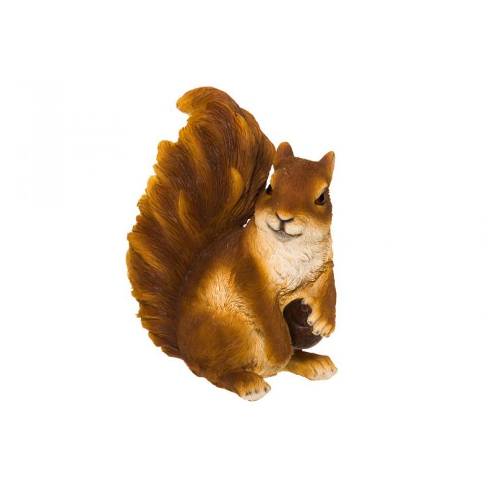 Orava istuu, väriltään punertavan ruskea.