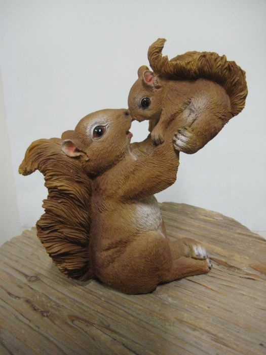 Hellyttävä koristepatsas puutarhaan tai sisälle, orava poikasen kanssa.
