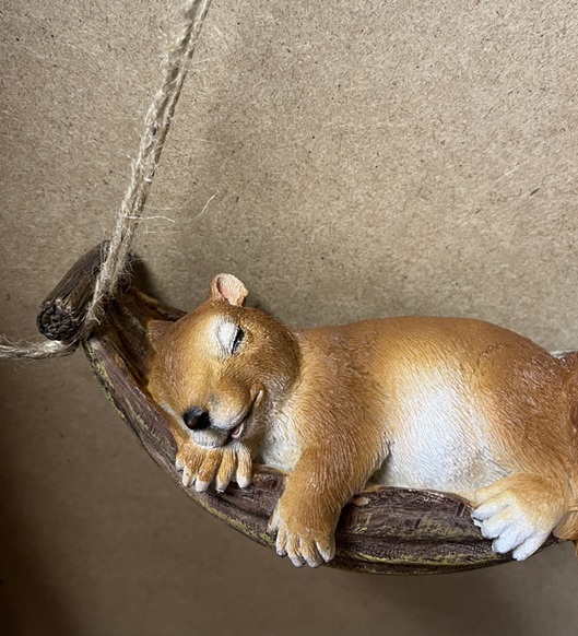 Koira ja kissa istuvat yhdessä. Väri ruskea ja harmaa Koko 15×12,5 cm, korkeus 13,5 cm. Materiaali polyresiini.