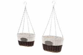 Kaksivärinen pajuamppeli, muovi sisällä, sisältää ketjut.