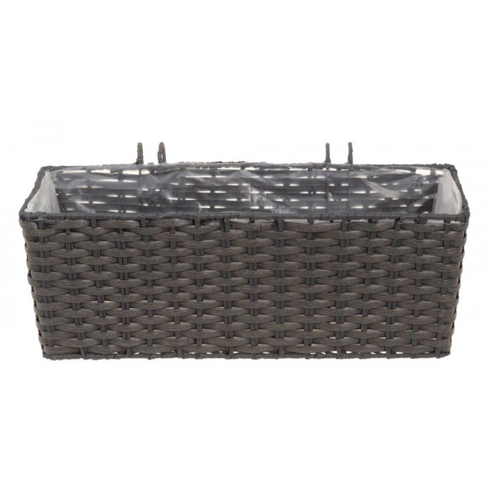 Kestävä ja kevyt parvekelaatikko. Materiaali kosteutta kestävä muovirottinki, sisältä muovitettu.