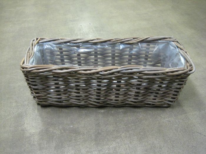 Pajukori, joka on sisältä muovitettu. Kaksi kahvaa. Korin koko 38×27 cm, korkeus 16 cm. Väri musta.