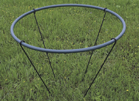 Muovitettu metalli tuki pensaille, neljä maahan upotettavaa jalkaa.