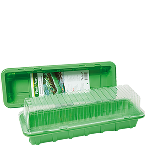 Siementen kylvöön ja taimikasvatukseen. Kompakti koko esim. ikkunalaudalle. Pituus 47 cm, leveys 16 cm. Pakkaus sisältää 24 kpl uudelleen käytettäviä muoviruukkuja; 4 kpl kuuden kappaleen kennoja, joissa ruukun syvyys 6,5 cm ja yhden ruukun leveys 4,5×4 cm.