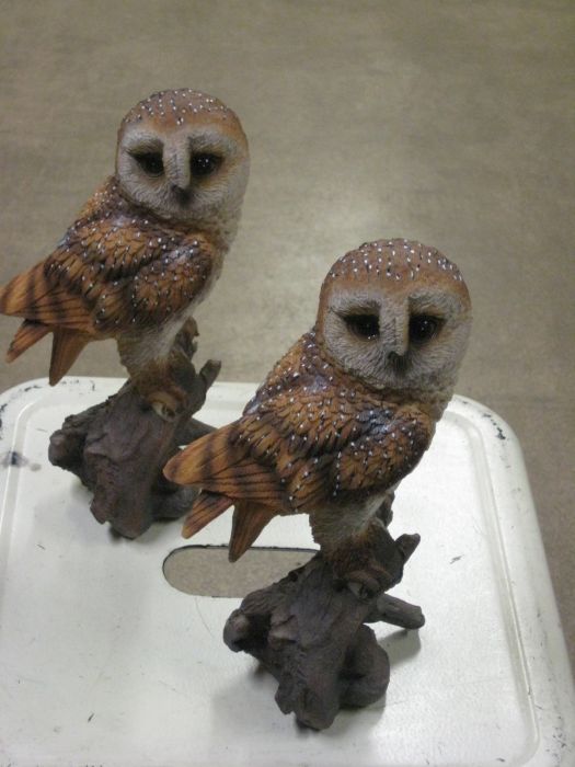 Sievä pöllöpatsas. Korkeus 23 cm, leveys 13 cm, syvyys 9 cm.