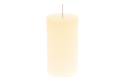 Läpivärjätty rustiikkikynttilä, korkeus 9 cm, halkaisija 5 cm. Paloaika 30 h.