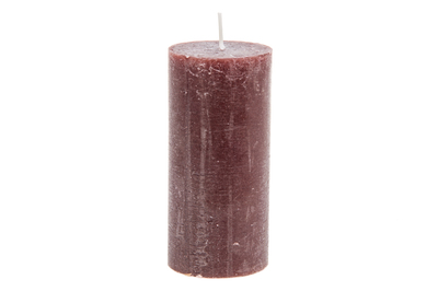 Läpivärjätty rustiikkikynttilä, korkeus 15 cm, halkaisija 7 cm.