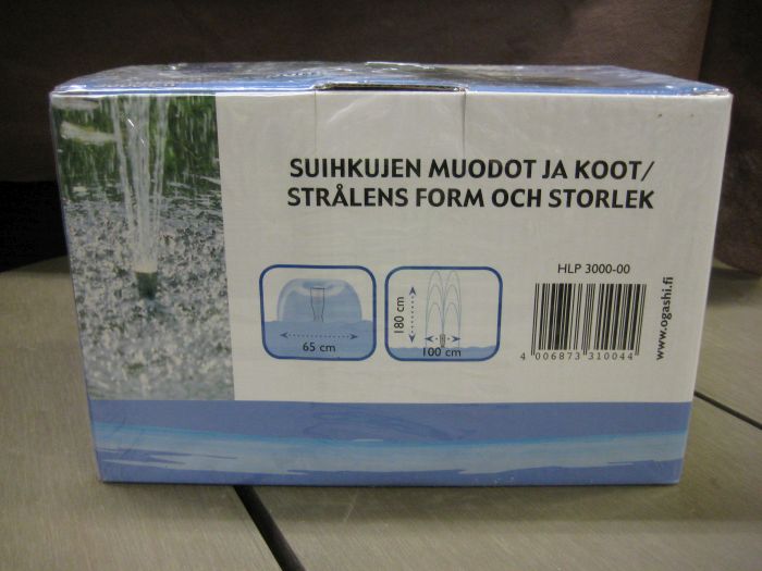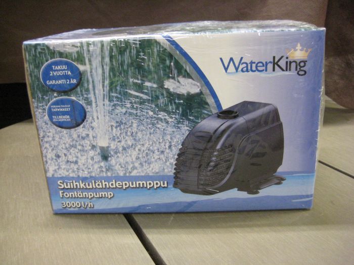 Laadukas suihkulähdepumppu, kokonais -nostokorkeus 180 cm ja halkaisija 100 cm.