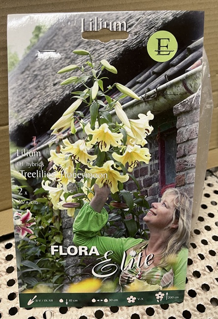 Upea, jopa kaksimetrinen puulilja, kauniit kellertävät kukat.