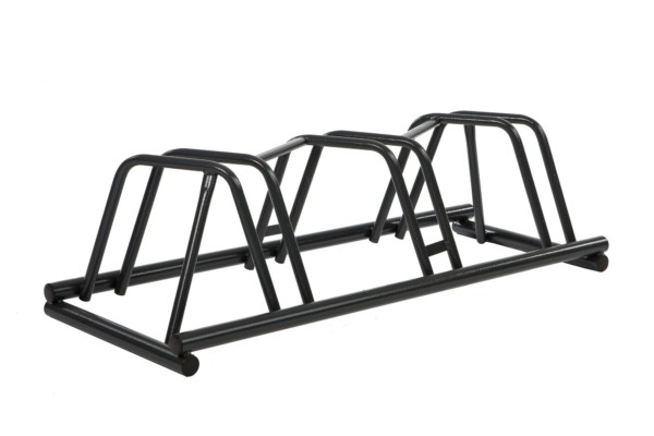 Telineessä on paikat kolmelle pyörälle ja sen korkeus on 32 cm, leveys 38 cm ja pituus 100 cm.