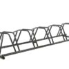 Kotimaisessa Varax pyörätelineessä 155P on harmaalla polyesterpinnoitteella pinnoitettu sinkitty runko.
