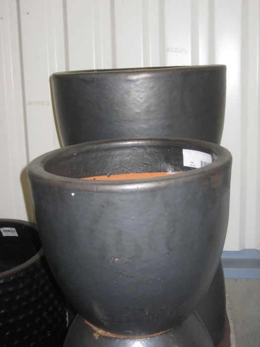 Tyylikäs tumman harmaaksi maalattu saviruukku.