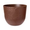 Jämäkkä saviruukku, jossa on kaunis lehtikuvio. Korkeus 10,5 cm, halkaisija 11,5 cm. Väri luonnonvalkea, kuviointi harmaa. Pohjassa ei ole reikää.